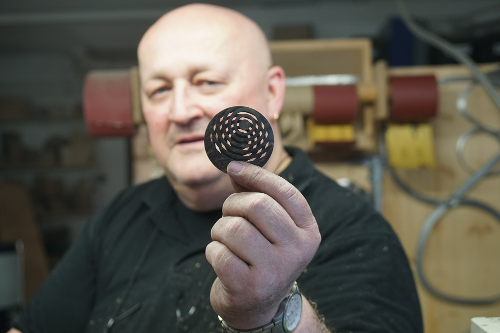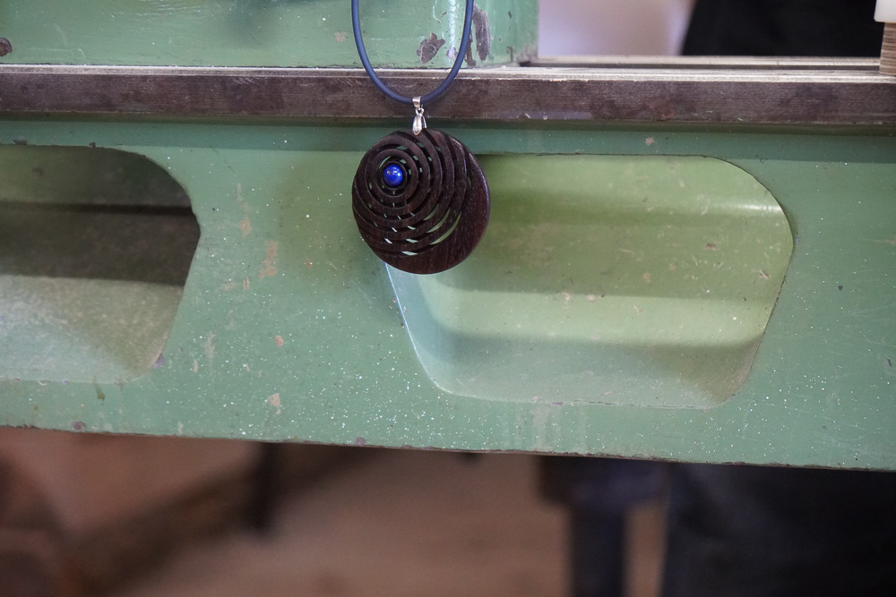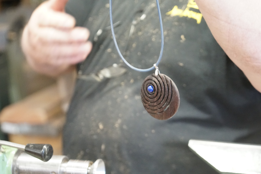 Er wird einen Anhänger in durchbrochener Technik drechseln. |