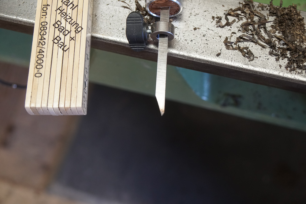 MIt der Spezialhandauflage kann dann milimetergenau die Breite gestochen werden. |