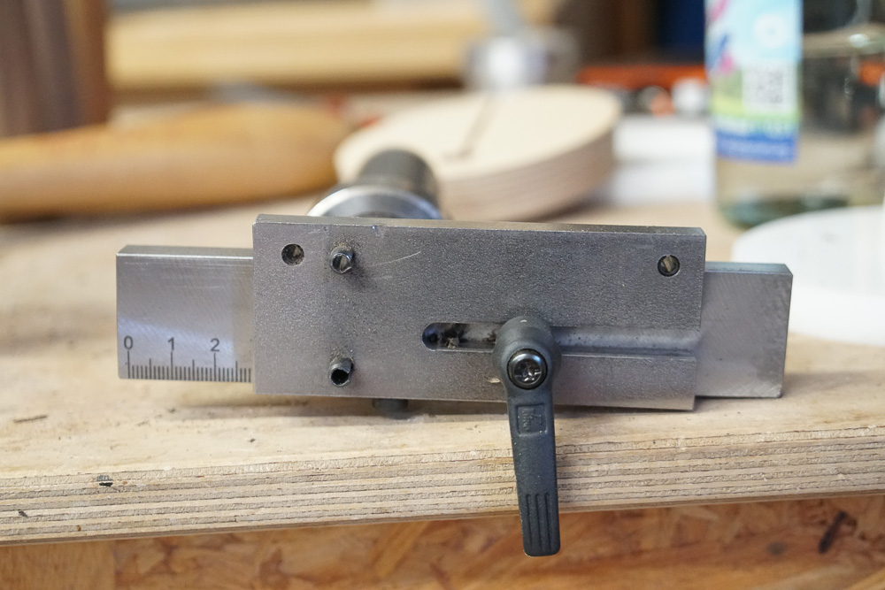Die Spezialhandauflage mit Milimeter-Skala und Führung für das Eisen. |