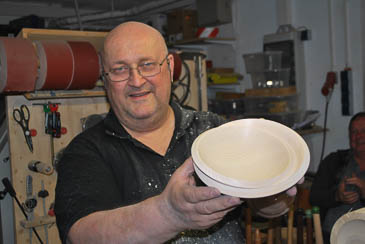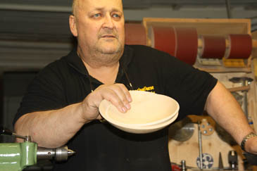 Anhand der fertigen Schale erklärt Martin was passiert, wenn die Wandstärke nicht exakt gleichmäßig ist. |