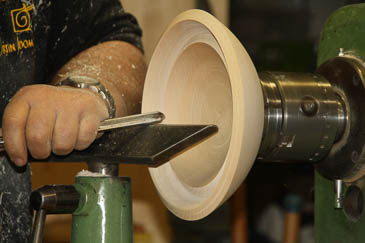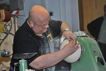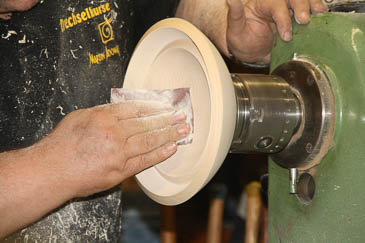 Dann wird der Spannzapfen entfernt und die Außenseite absolut kugelförmig fertig gedrechselt. |