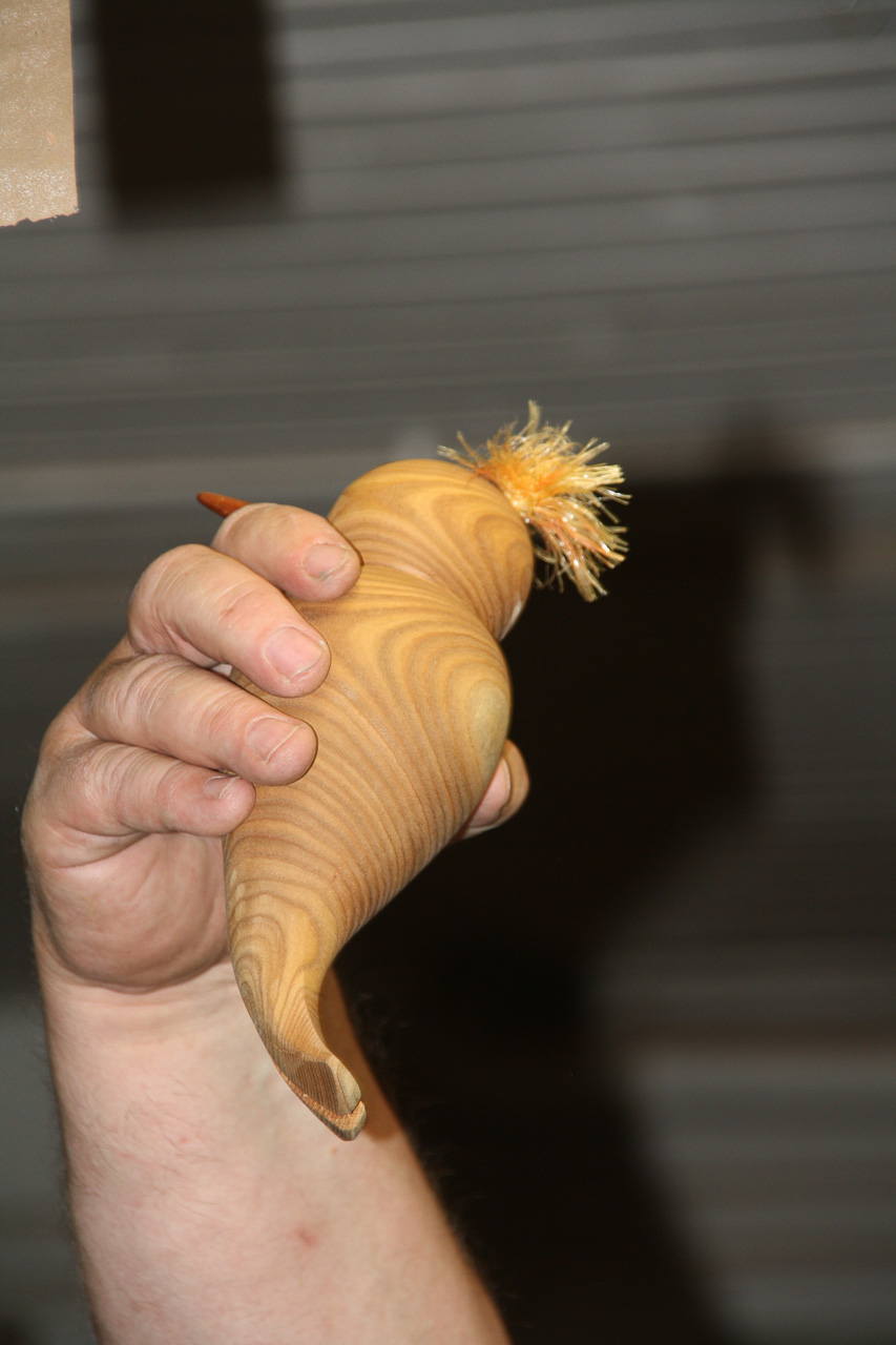 Schon ist der Grundkörper fertig. Schwanzfedern, Körper und Kopf. |