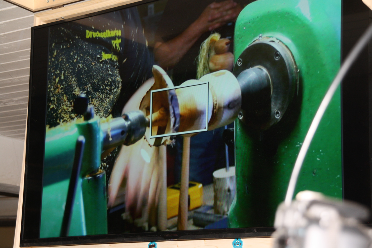 Die Übertragung auf den Drechslertreff-Monitor, damit's auch wirklich jeder sehen und verfolgen kann. |
