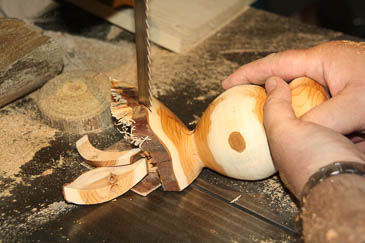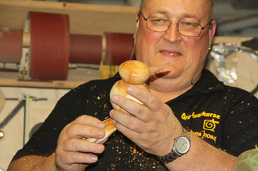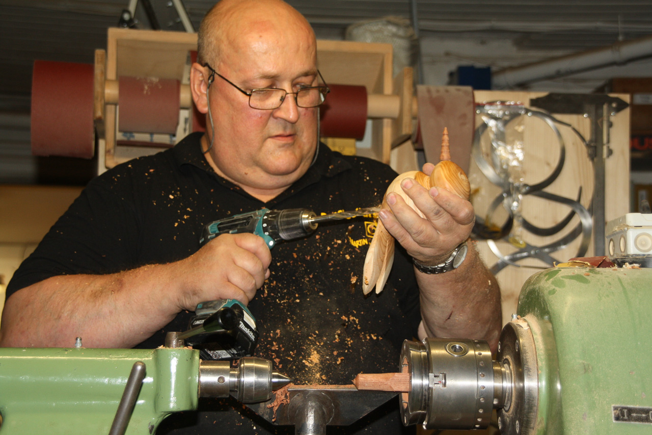 Martin zeigte, wie man diese netten Kerlchen einfach drechseln, ausdrucksstark schleifen und stimmungsvoll bohren kann.