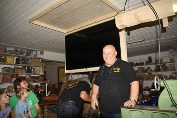 Unglaublich aber wahr - Ein Riesenbildschirm für die Übertragung der Drechselvorführungen an alle Sitz- und Stehplätze in der Werkstatt.