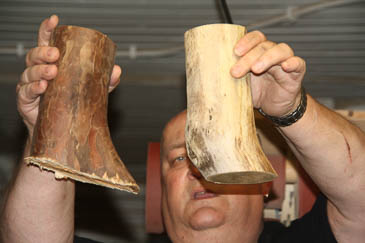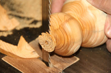 Der Zapfen wird abgesägt. |