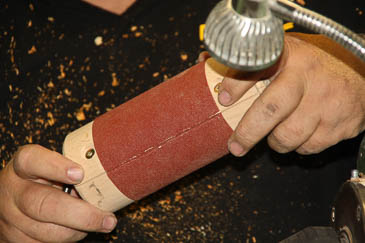 Nun können mit der Schleifwalze die Schwanzfeder fein herausgearbeitet werden. |