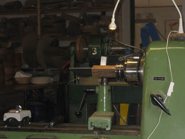 Wie häufig beim drechseln - Es beginnt mit dem Rundschruppen der Kantel. |