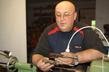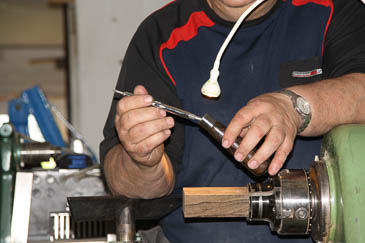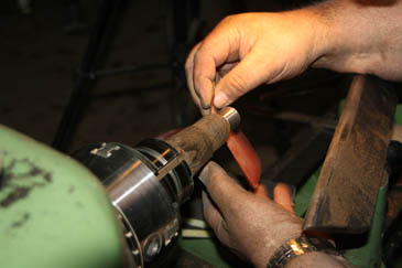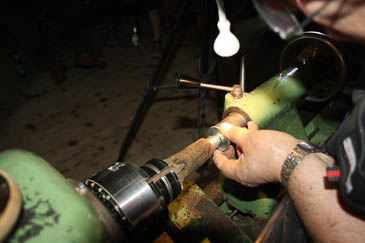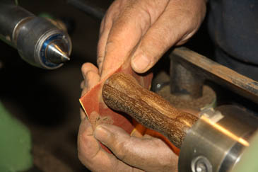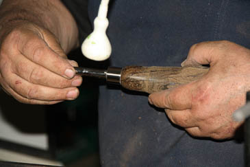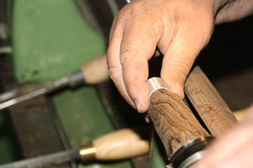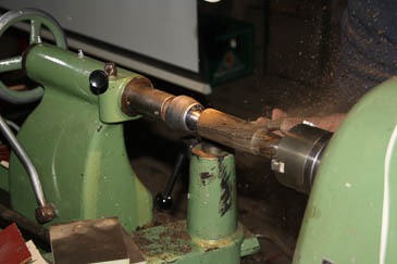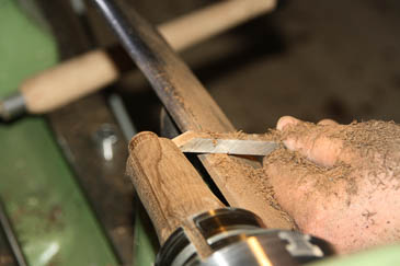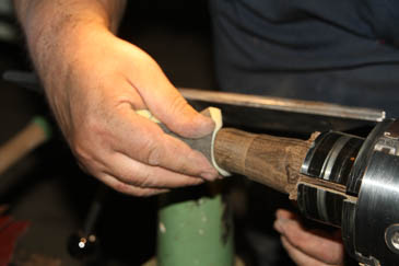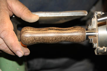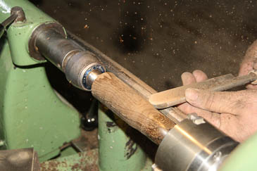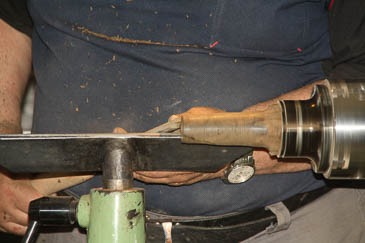 Der Handgriff wird weitgehend fertiggedrechselt. |