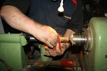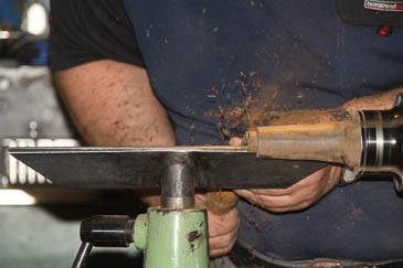 Der Griff wird auf den Innen-Durchmesser der Heftzwinge abgedreht. |