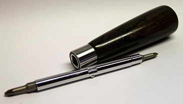 Der Einsatz des Schraubendrehers zum Umstecken. Und in jedem Ende sind nochmals zwei Bits zum drehen |