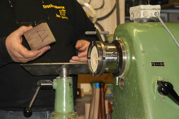Nun wird der obere Mühlenkörper eingespannt und gebohrt. |