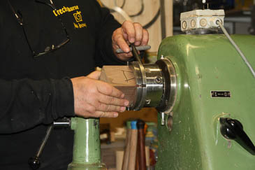 Jetzt spannt Martin das Oberteil mit dem Unterteil zusammen. Damit stellt er sicher, dass alles schön zentrisch sein wird. |