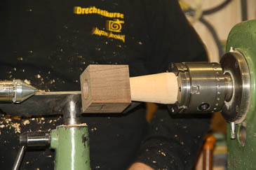 ... und den Zapfen andrehen, der sich später im Unterteil drehen wird. |