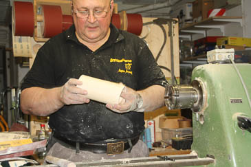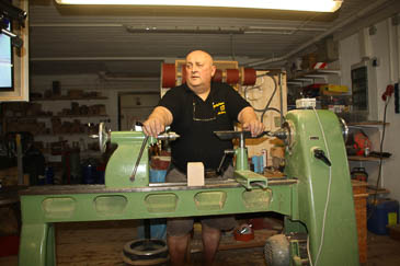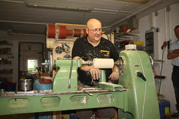 Deshalb schleift Martin hier bei stehender Maschine diese Spänchen ab. |