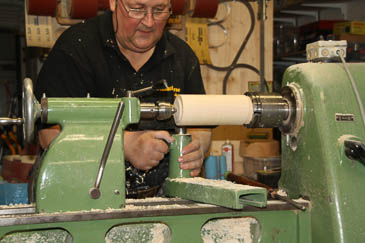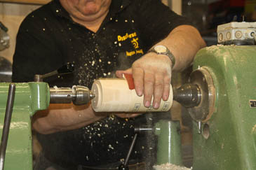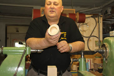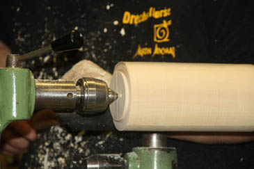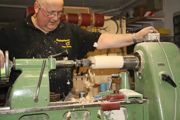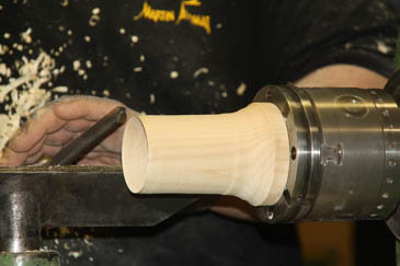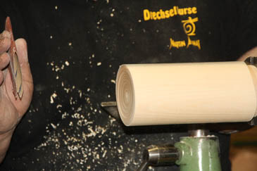 Und diese außen ovale Dose wird nun gedrechselt. |