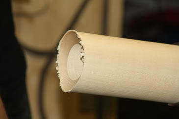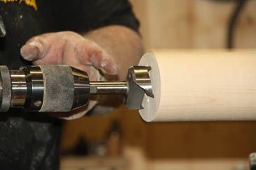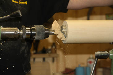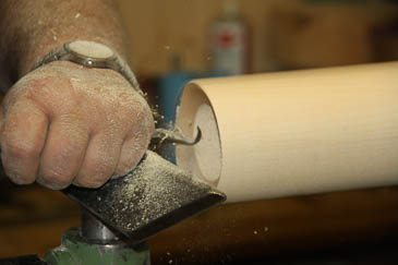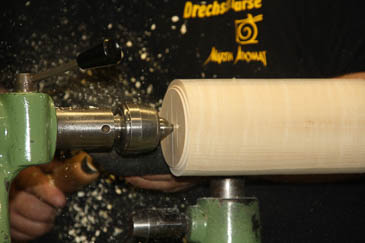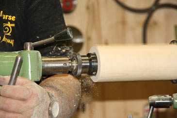 Und jetzt die Dose sicher auf dem Holz. Die Reitstockspitze unterstützt noch ein wenig. |