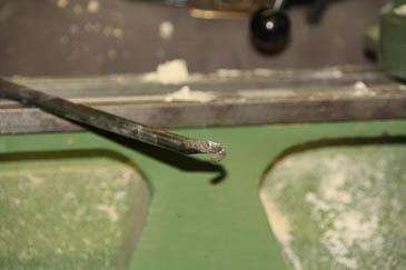 Hier ist sehr schön zu sehen, wie die Walz versetzt eingespannt wurde und die - hier jetzt die sich unten befindende - Seite bearbeitet wird. |
