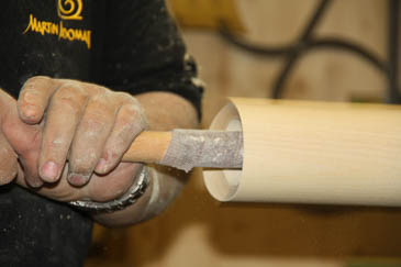 Damit rundet Martin die Öffnung aus, so dass sie kugelförmig wird. |