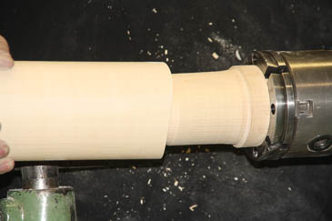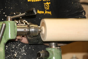 Nun ist der Dosenkörper schon weitgehend oval gedrechselt. Zeit, einen Zapfen anzudrehen ... |