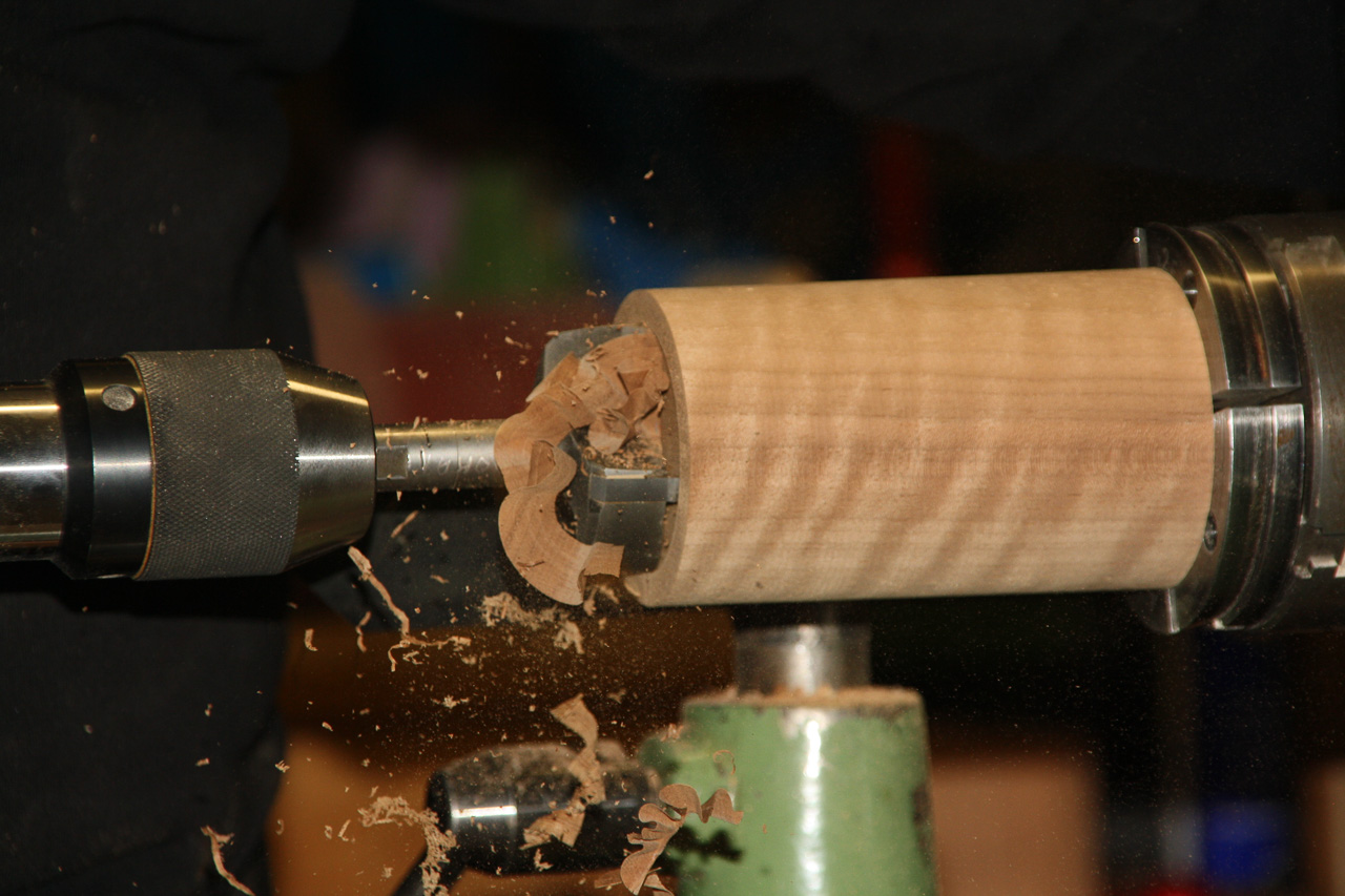 Mit einem passenden Forstnerbohrer wird der Körper ausgehöhlt.