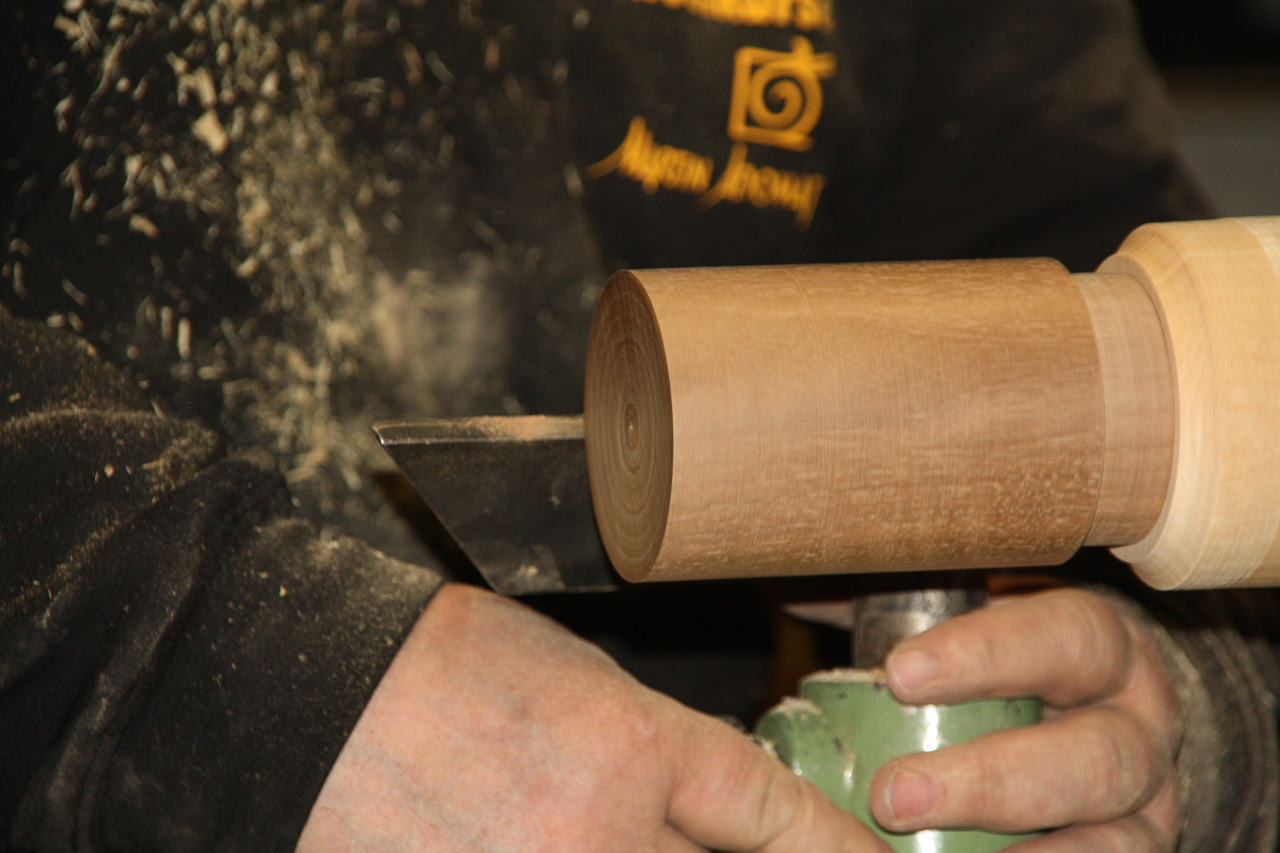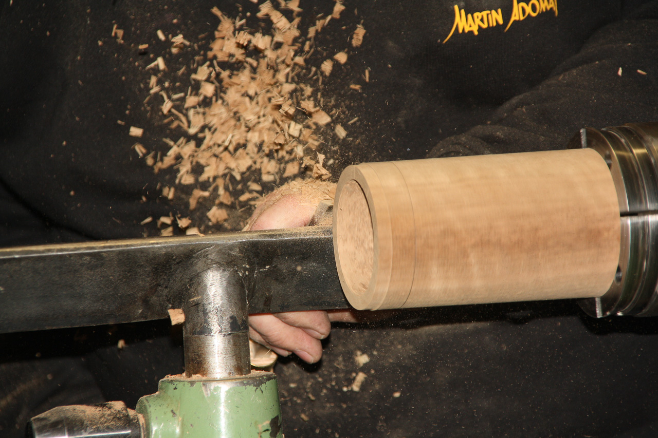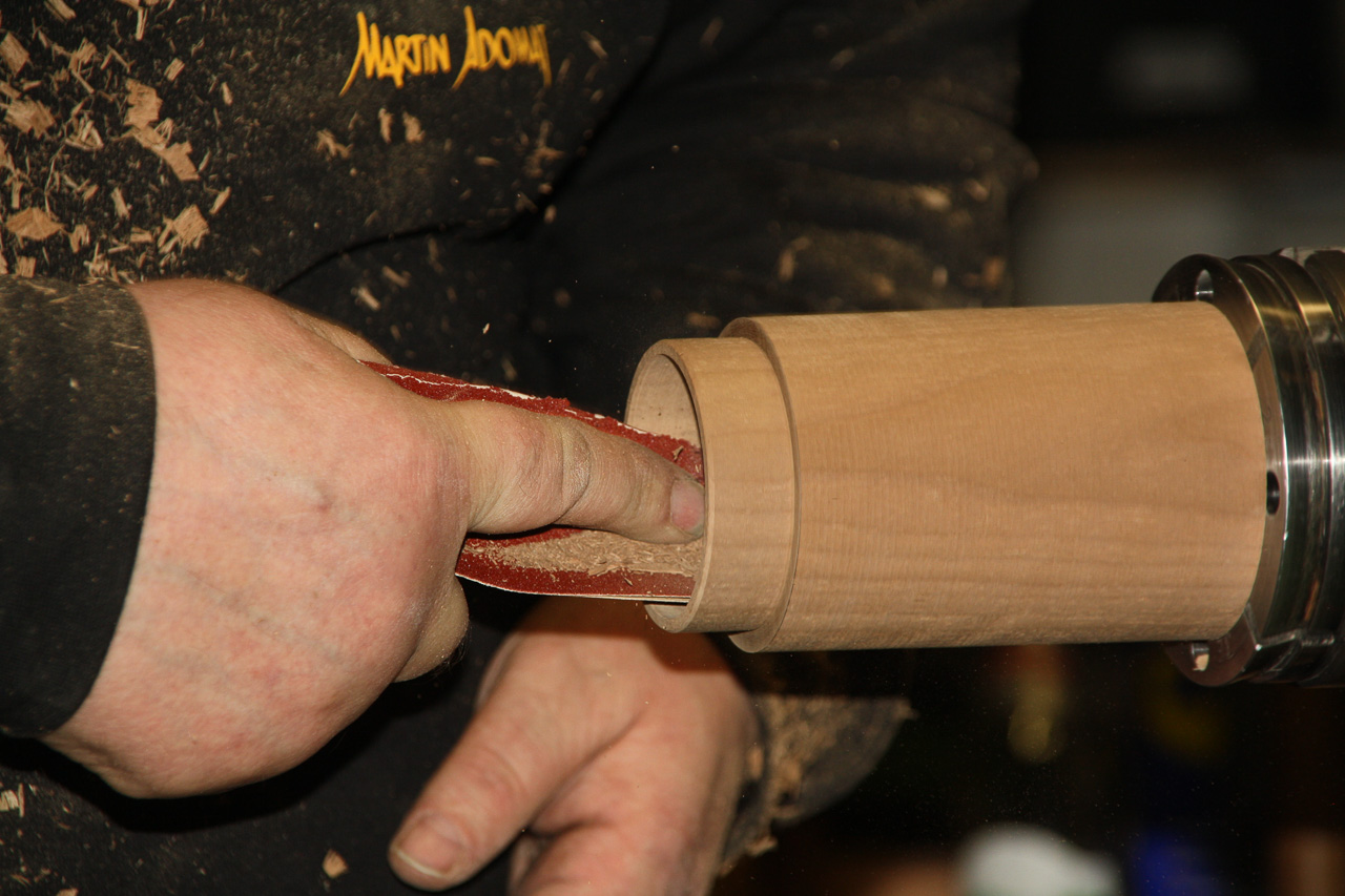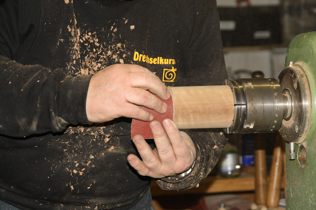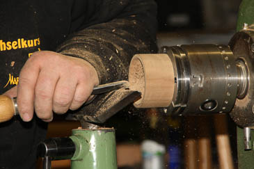 Versäubern der Deckelinnenseite und eine leicht konkave Oberseite andrehen.