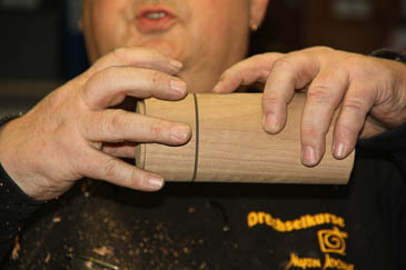 Weiter ist es sinnvoll, die Dose nach jedem Arbeitsschritt (Runddrehen, Aushöhlen, etc.) einige Tage bis zu zwei Wochen ruhen zu lassen. Dadurch entspannt sich das Holz und der Ploppeffekt wird besser.