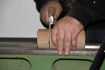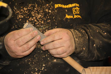 Jetzt wird dem Meißel der Innenfalz geschnitten.