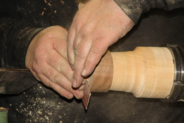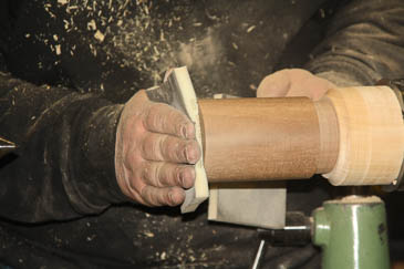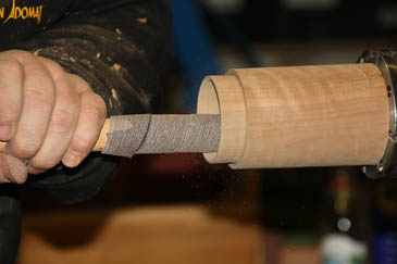 Auf keinen Fall viel Schleifen, weil sonst der Falz durch die unterschiedliche Struktur (Fladerung und stehende Fasern) schnell leicht oval wird und der Plopp-Effekt ausbleiben wird.