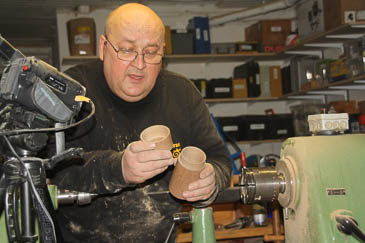 Jetzt müssen noch die Zapfen am Dosenboden und an der Deckeloberseite entfernt werden. Martin macht das mit eine Aufnahme.
