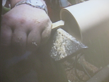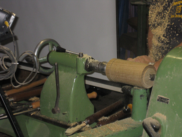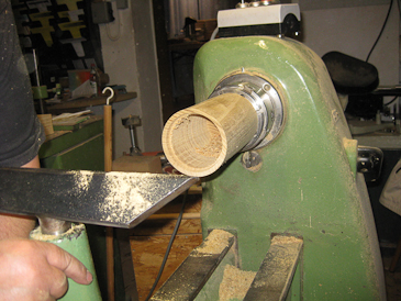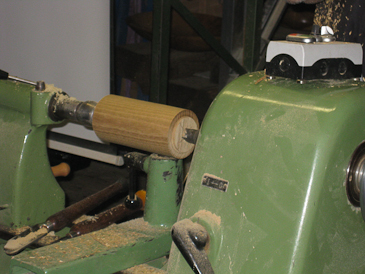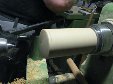 das rundgeschruppt wird. Und zwei Zapfen (Deckel und Dose) für das Spannfutter werden gleich angedreht. |
