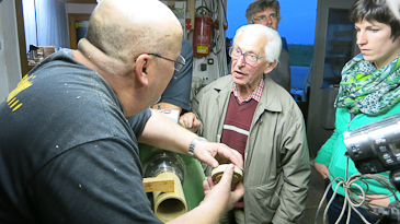 Martin tauscht sich mit Josef Baumann aus Neugablonz über Gewinde strehlen, Gewinde fräsen oder eben einkleben, aus. |