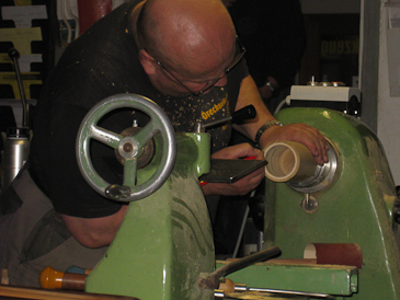 In der Pause Fachgespräche von Drechslermeister zu Drechslermeister.