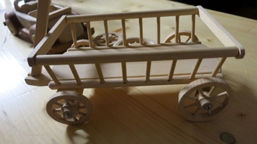 Josef Baumann fertigt in seinem hohen Alter immer noch meisterlich-schönes Holzspielzeug wie zum Beispiel dieses Leiterwägelchen, Motorräder, Traktoren und Lastwägen an. Ein Besuch in seiner Werkstätte ist immer zu empfehlen. |
