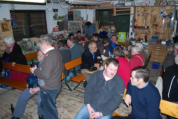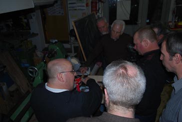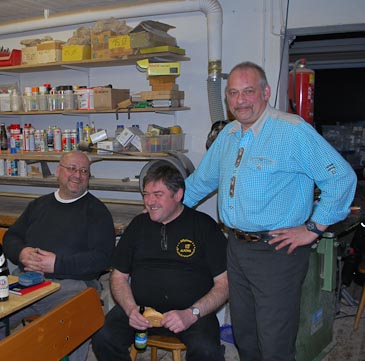 Demnächst wird Martin die Kreissäge, die Säulenbohrmaschine und den Bandschleifer raus schaffen müssen, damit beim Drechslertreff alle Platz haben.