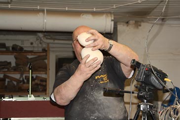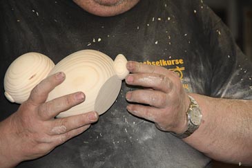 Und dann zeigte er, wie ein Osterhase aus Eiformen entstehen kann - wenn man's kann.