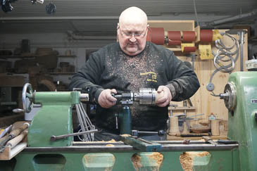 Der Rohling für den Dosenkörper ist schon eingespannt. |