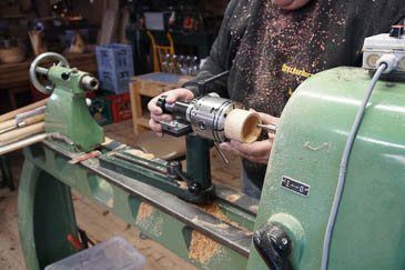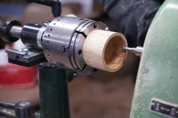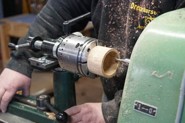 Jetzt wird der Dosenkörper ausgebohrt. |
