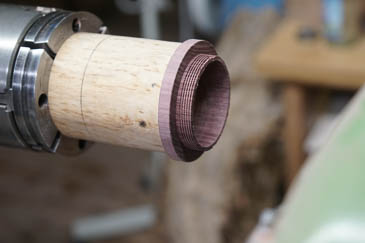 Nach dem gleichen Prinzip wie beim Deckel wird nun das Außengewinde beim Dosenkörper gefräst. |