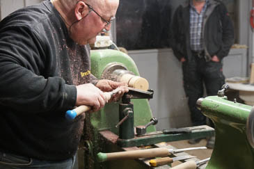 Martin wird heute abend eine Dose mit gefrästem Gewinde vorstellen. Das Holz für die Dose ist karelische Maserbirke. Zwischen dem Deckel und dem Dosenkörper soll ein farbiger, ringförmiger Absatz aus Amaranth (Violettholz) eingearbeitet werden. |
