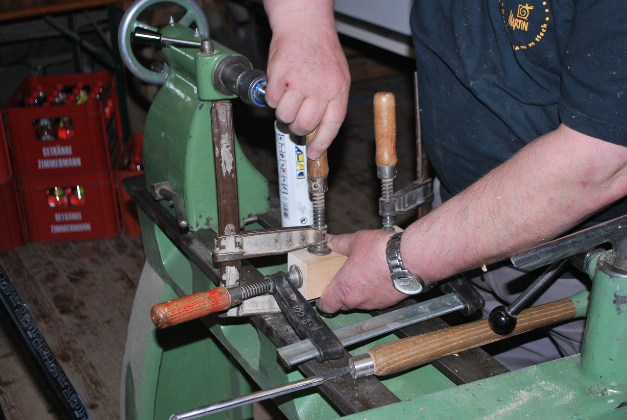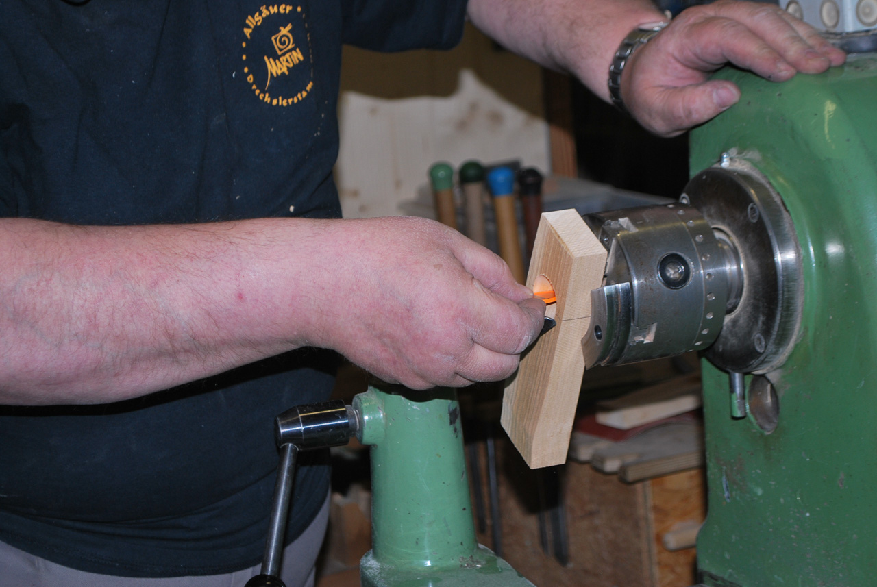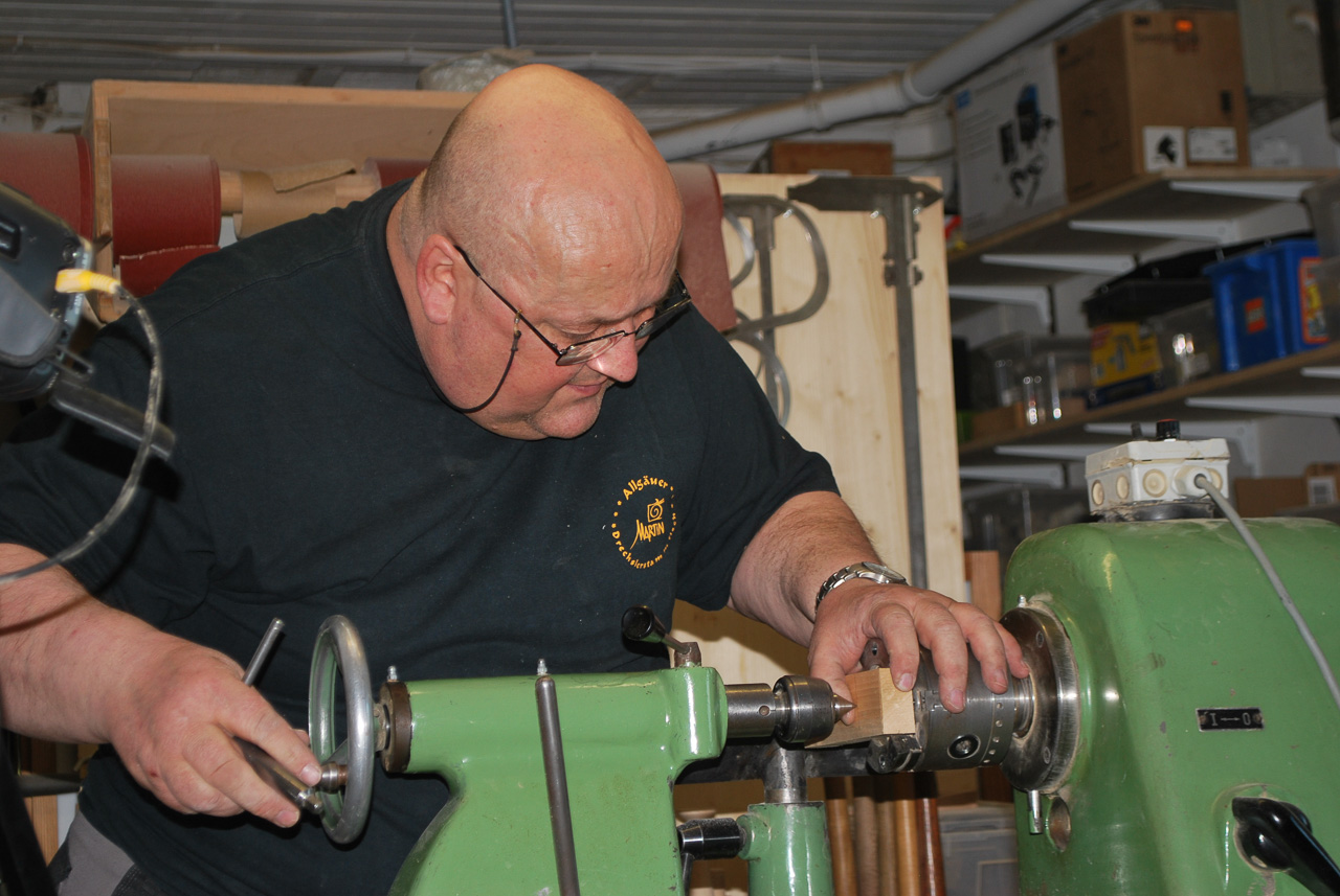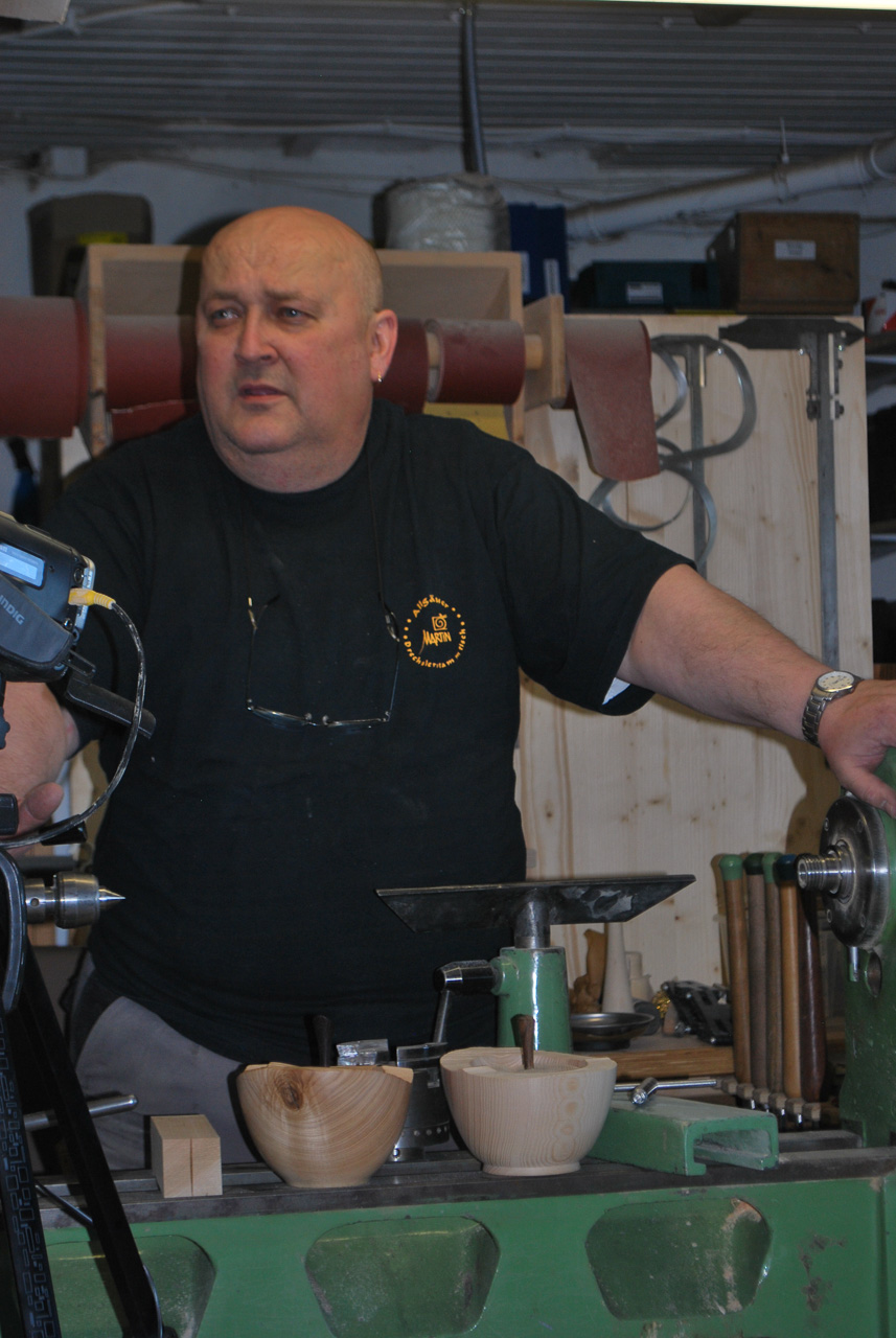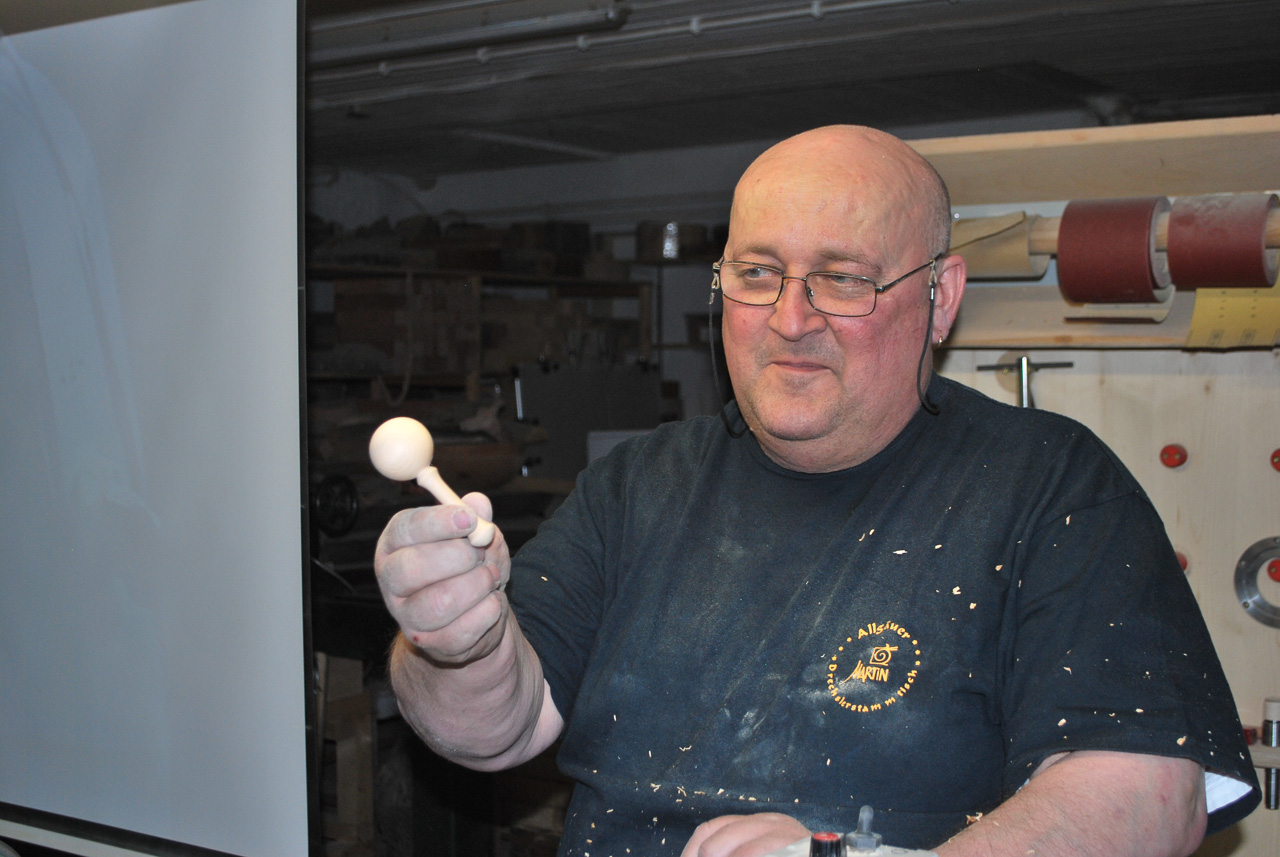 Der Drechsler-Nachwuchs sollte schon so früh wie möglich an das wunderbare Handwerk herangeführt werden. Deshalb zeigt Martin beim Drechslertreff wie man eine süße kleine