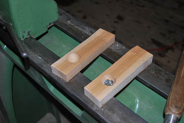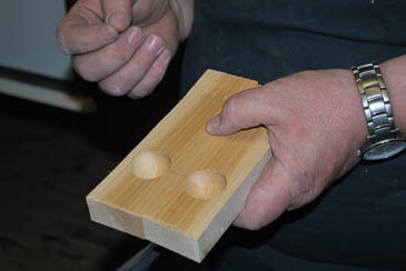 Jetzt wird eine Vertiefung ca. in der Größe einer Halbkugel in die Leiste eingedreht. |