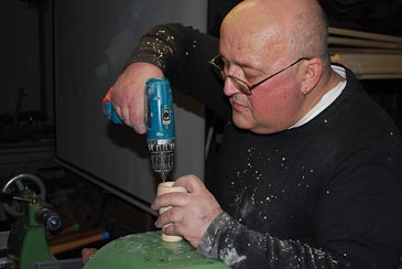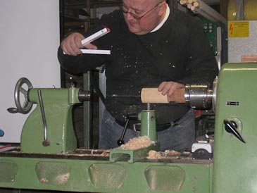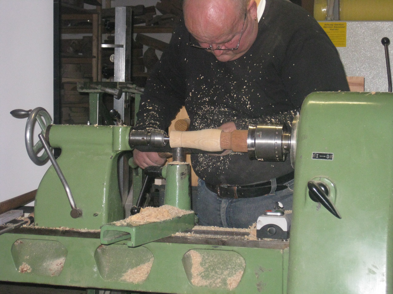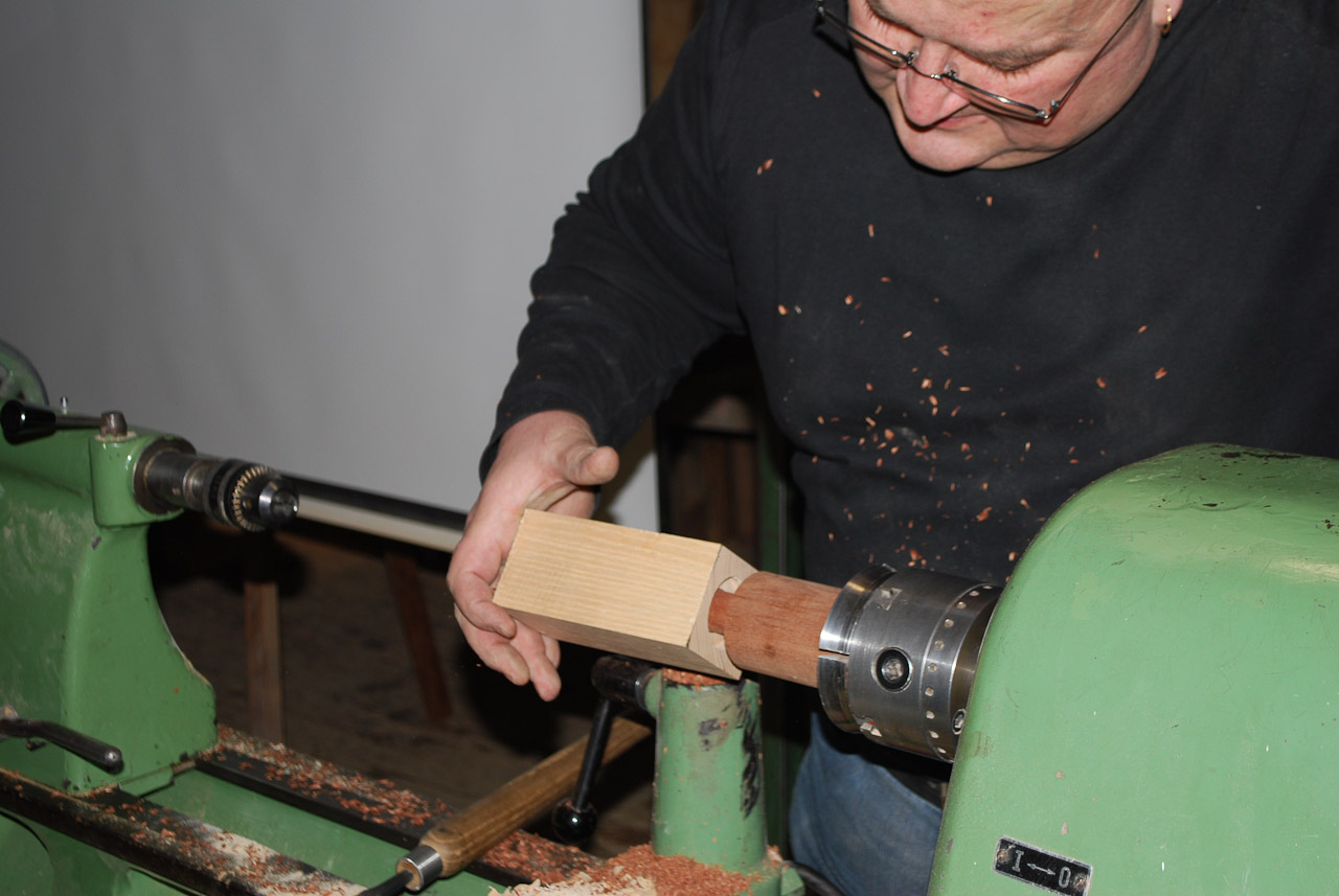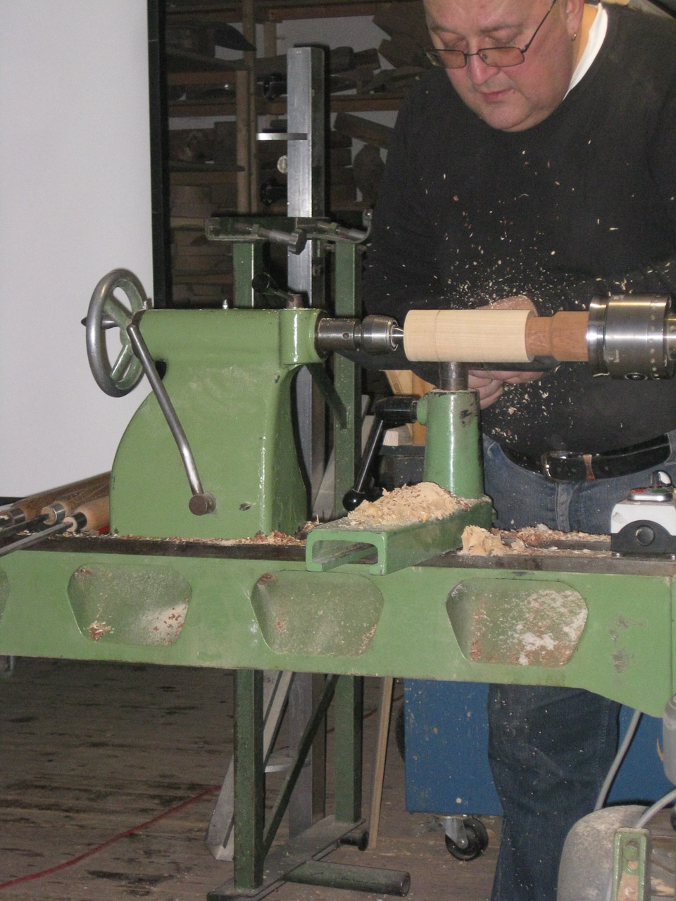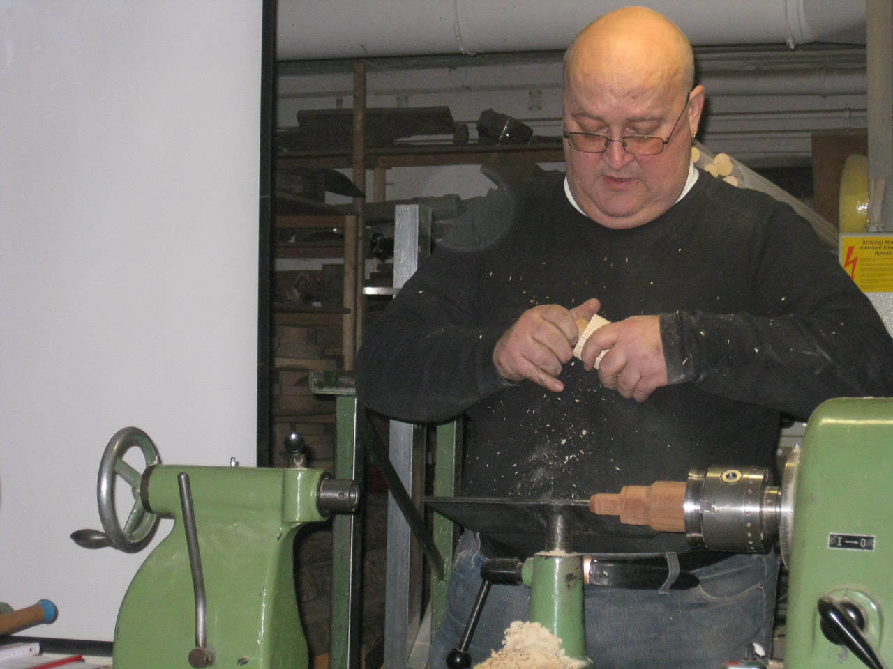 Unterdessen hat Martin eine Aufnahme für den Mühlenkantel gedrechselt. |