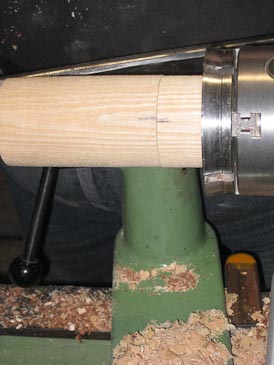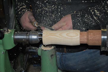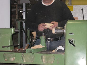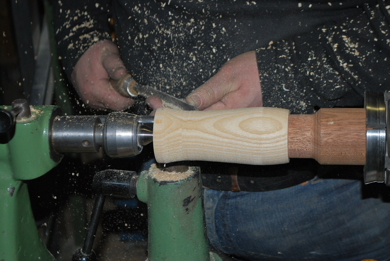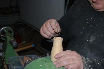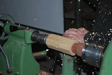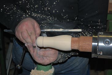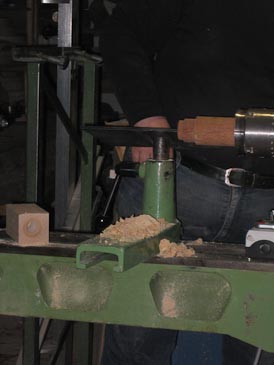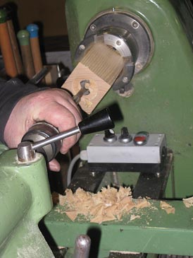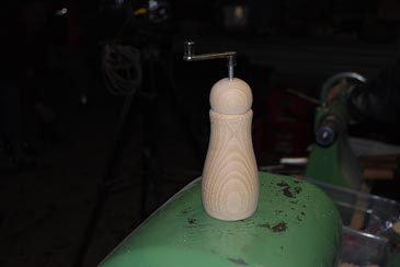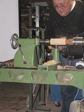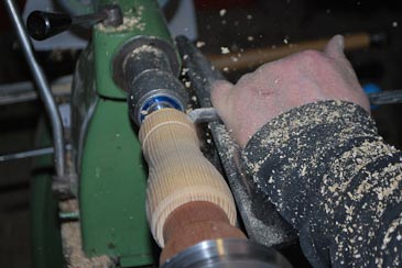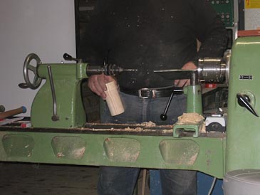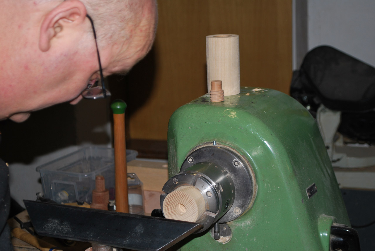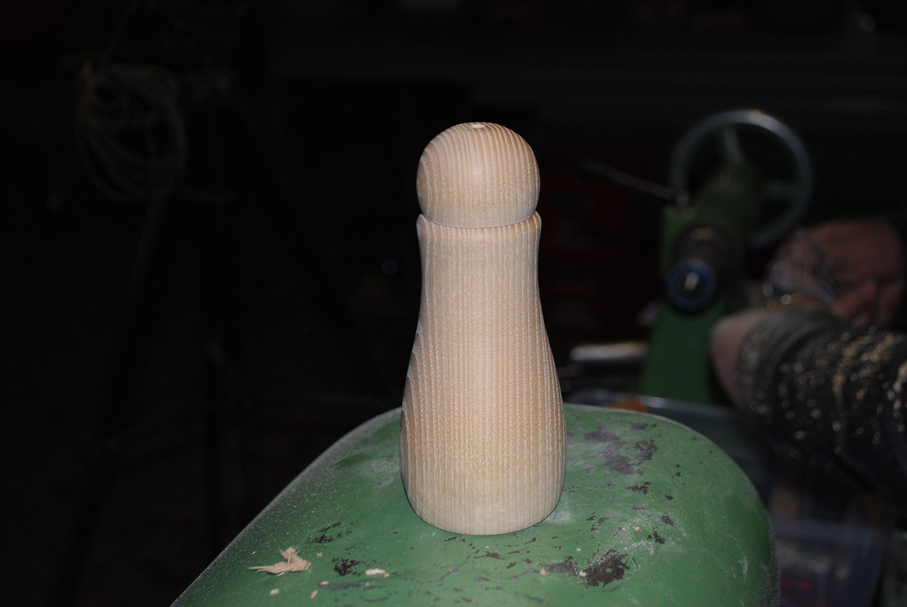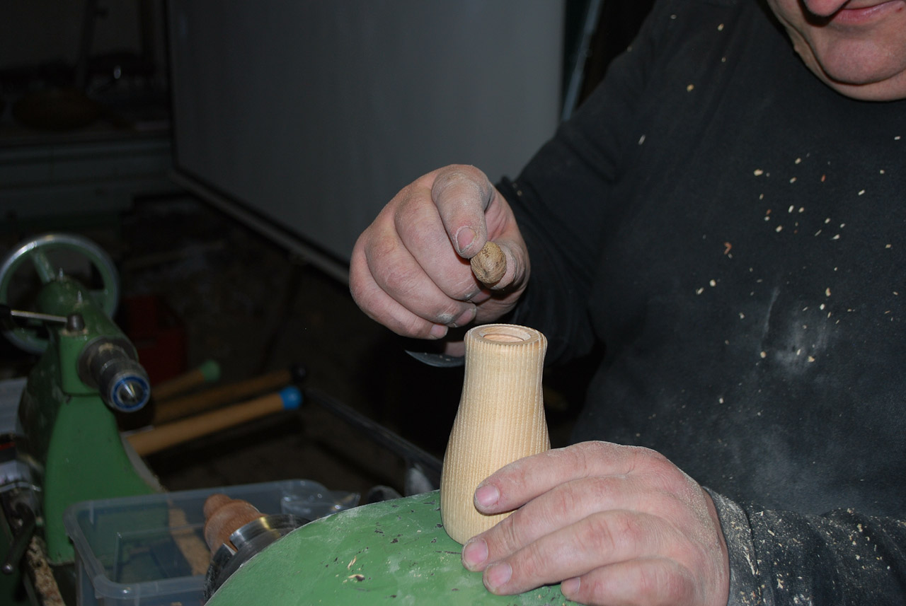 Jetzt - endlich, werden die passonierten Drechsler sagen - wird die Form der Mühle gedrechselt.