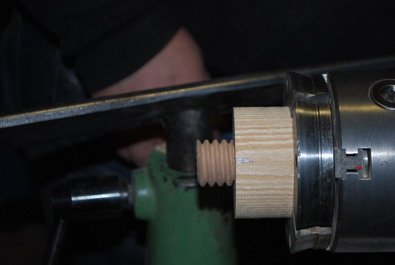 Für diesen Schraubmechanismus wird ein vorgefertigtes Holzgewinde in Ober- und Unterteil eingeleimt.