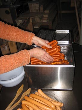 Gisela hat die Aufgabe übernommen, den neuen Würstlwärmer einzuweihen.