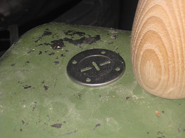 Wichtig ist nun die ganz genaue Längenjustierung der Mahlstange, damit bei kleiner werdender Muskatnuss nicht die Mitnehmer in die Schneidplatte kratzen. |