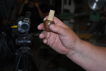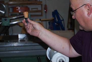 Und so spendiert er dem armen, kleinen Korkerl einen schönen, gedrechselten Griff.