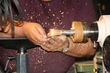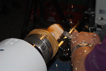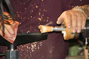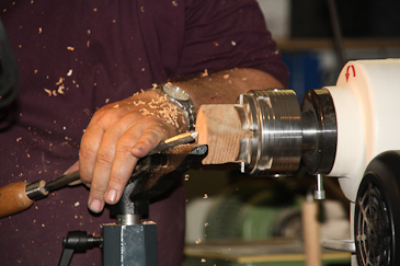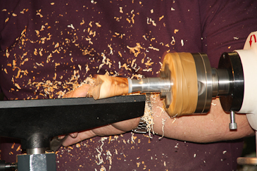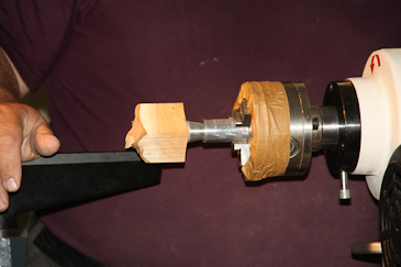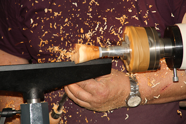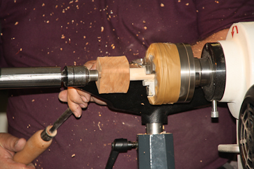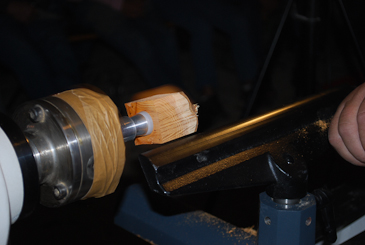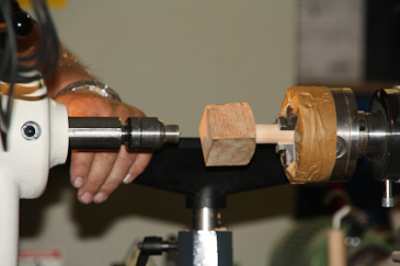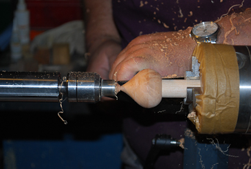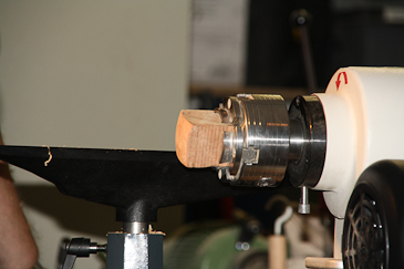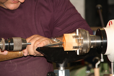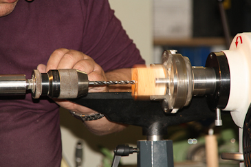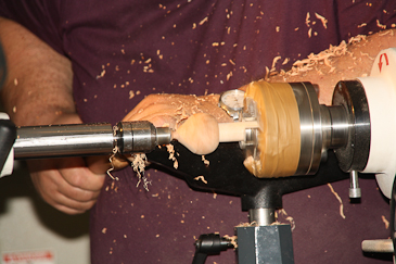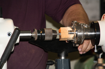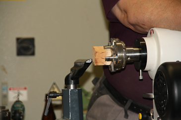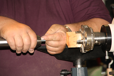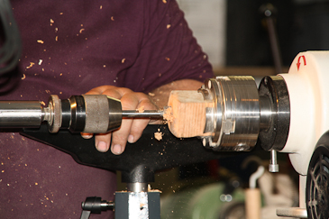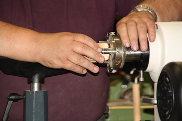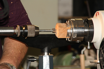Dann auf einen 20-mm-Dübel umspannen und mit dem Reitstock sichern. |