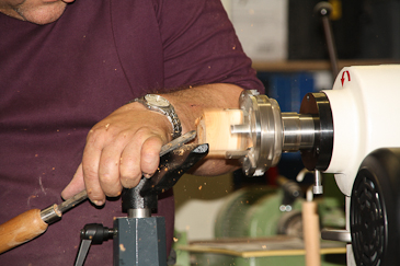 Eine kleine Hohlkehle andrehen.